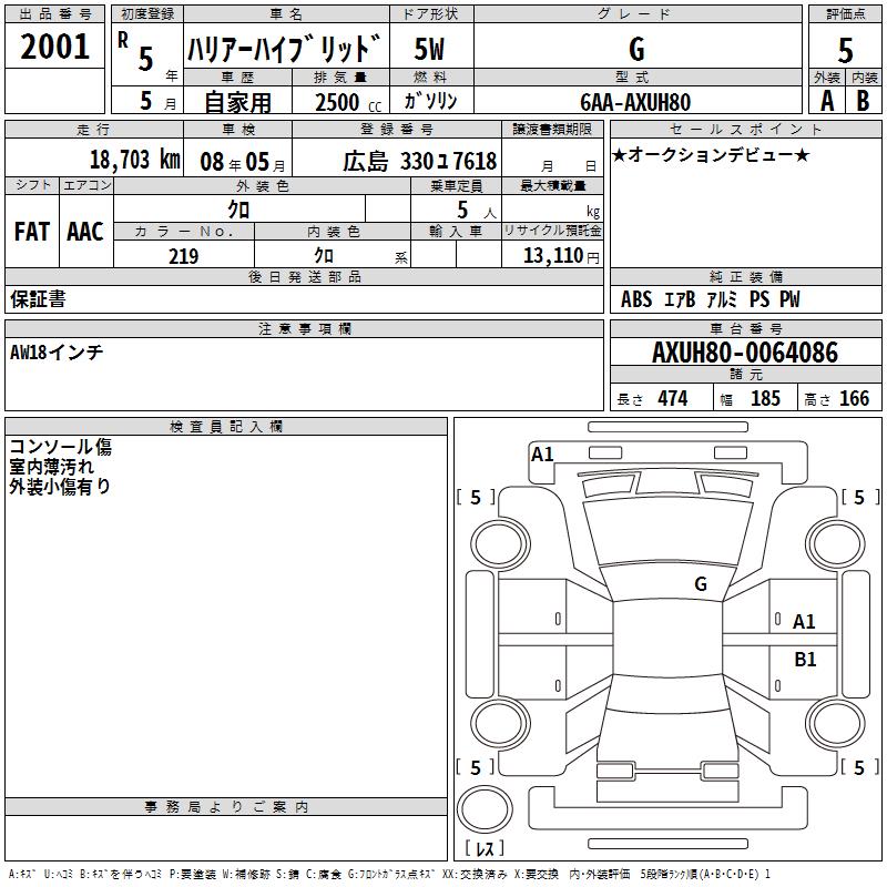 TOYOTA HARRIER HYBRID - лот 2001