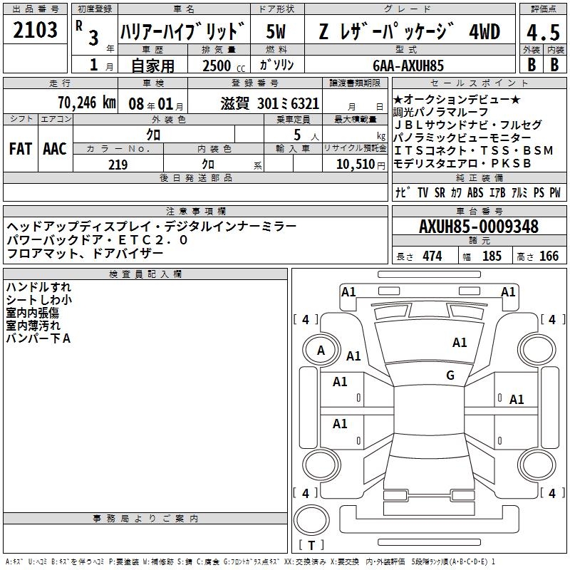 TOYOTA HARRIER HYBRID - лот 2103