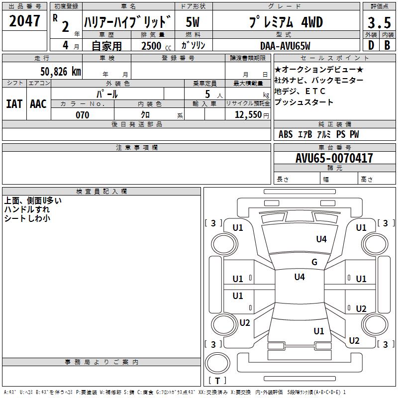 TOYOTA HARRIER HYBRID - лот 2047