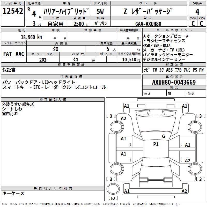 TOYOTA HARRIER HYBRID - лот 12542