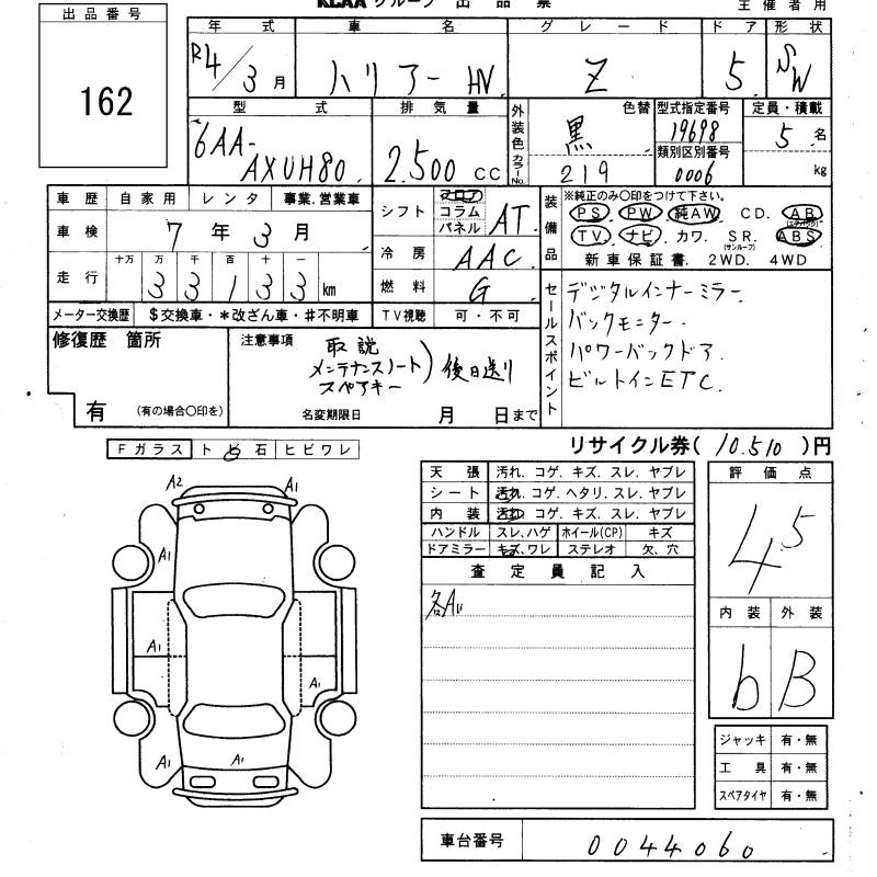 TOYOTA HARRIER HYBRID - лот 162