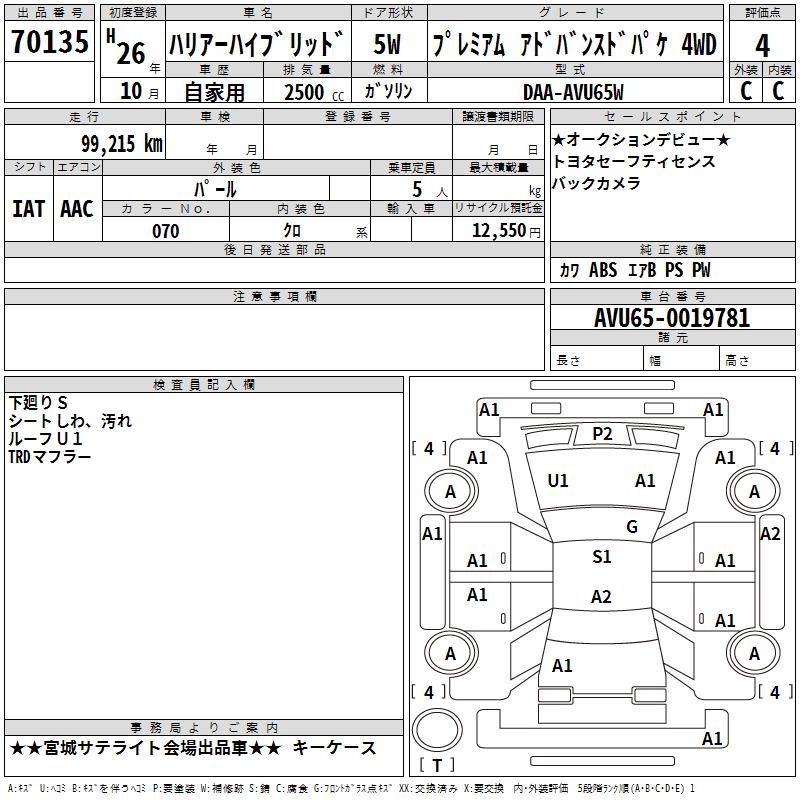 TOYOTA HARRIER HYBRID - лот 70135