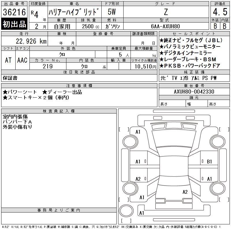 TOYOTA HARRIER HYBRID - лот 36216