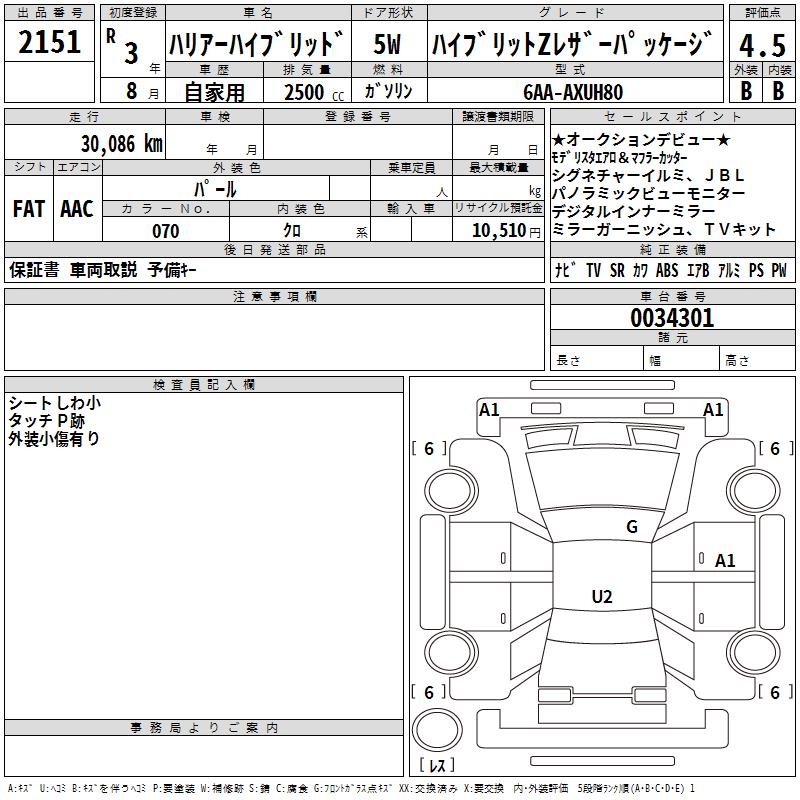 TOYOTA HARRIER HYBRID - лот 2151