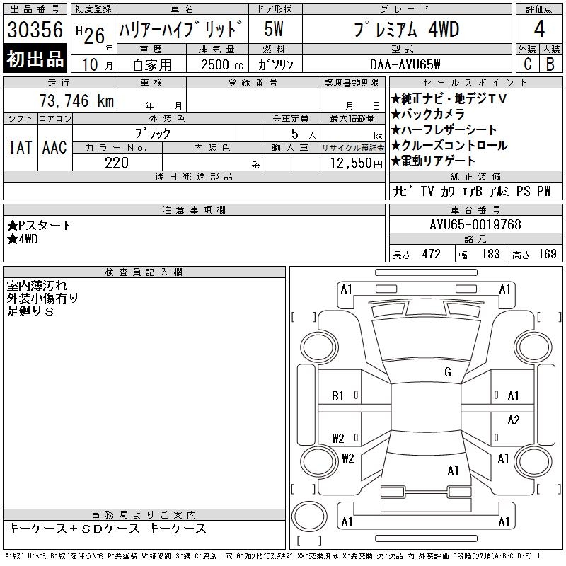 TOYOTA HARRIER HYBRID - лот 30356