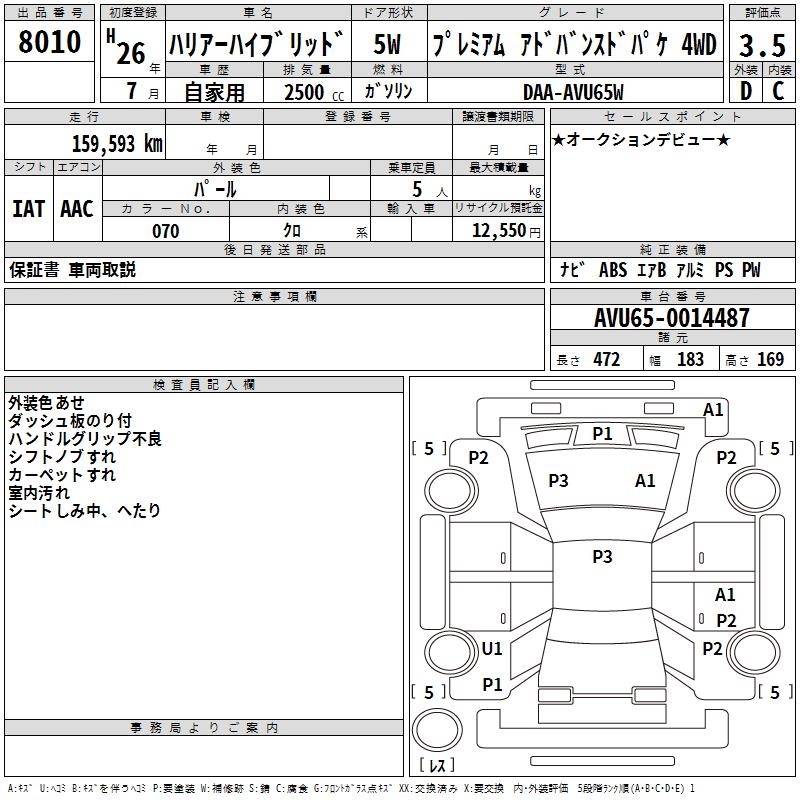 TOYOTA HARRIER HYBRID - лот 8010