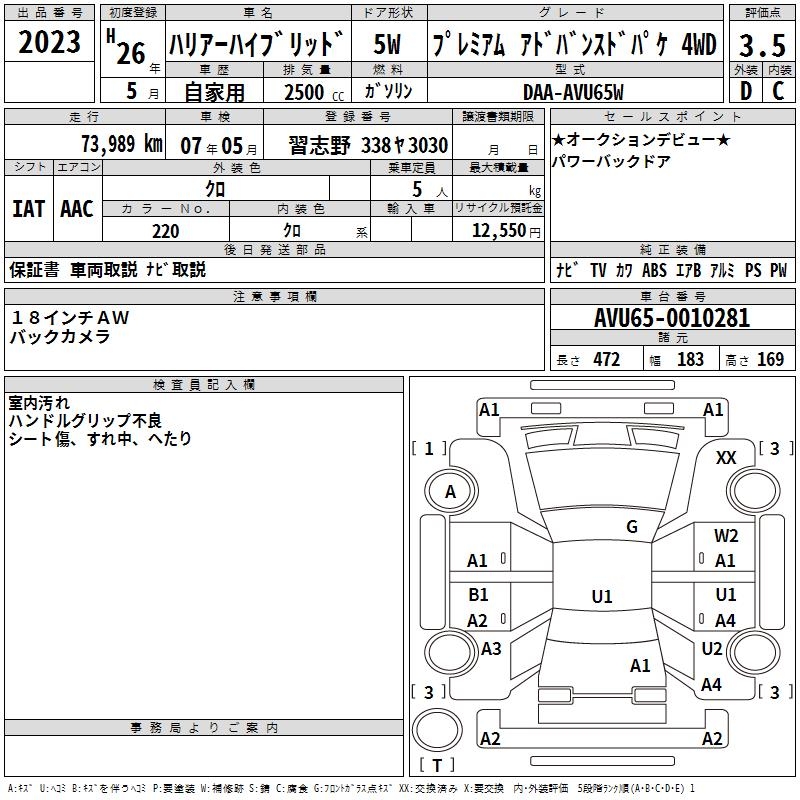 TOYOTA HARRIER HYBRID - лот 2023