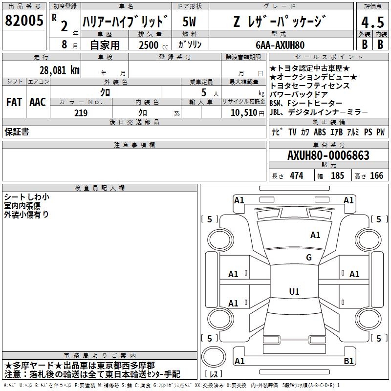 TOYOTA HARRIER HYBRID - лот 82005