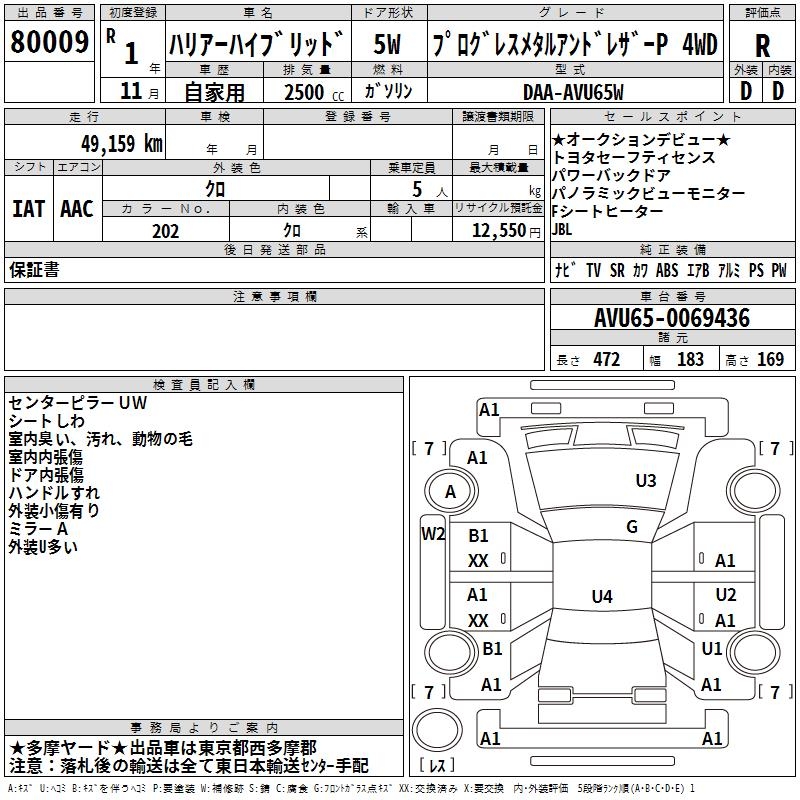 TOYOTA HARRIER HYBRID - лот 80009