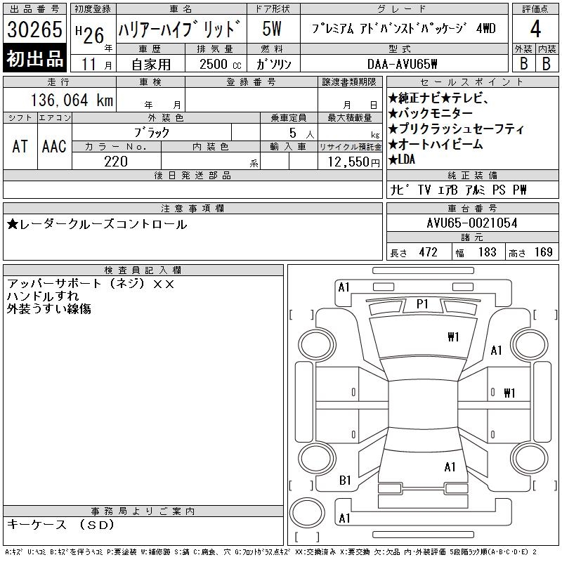 TOYOTA HARRIER HYBRID - лот 30265
