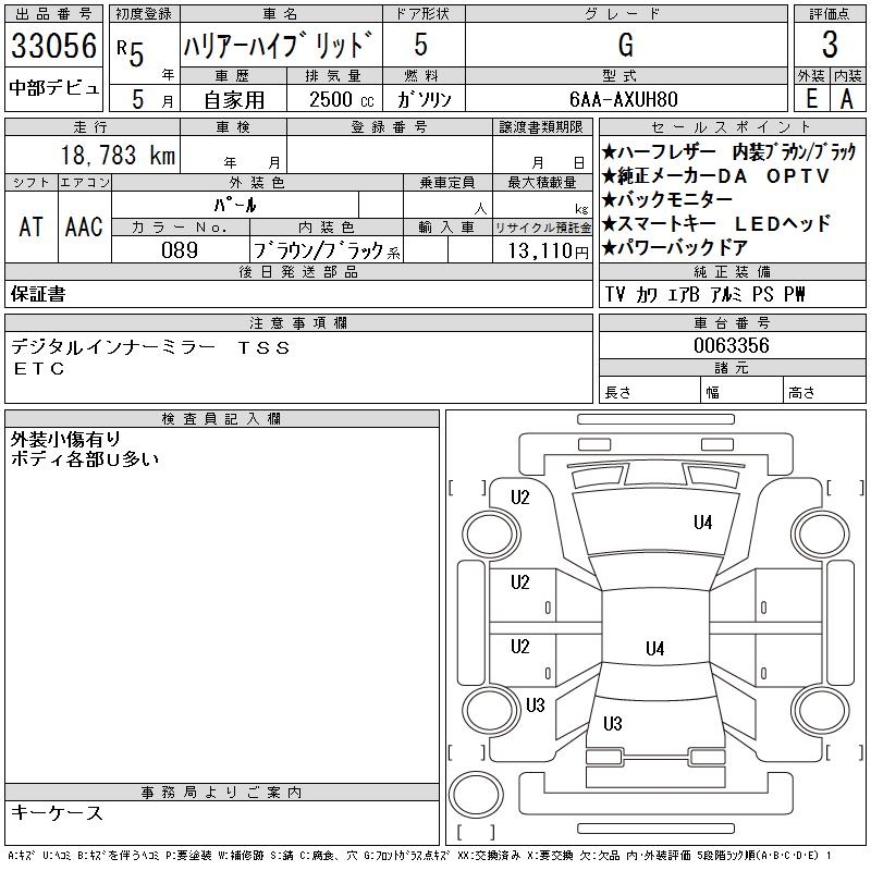 TOYOTA HARRIER HYBRID - лот 33056
