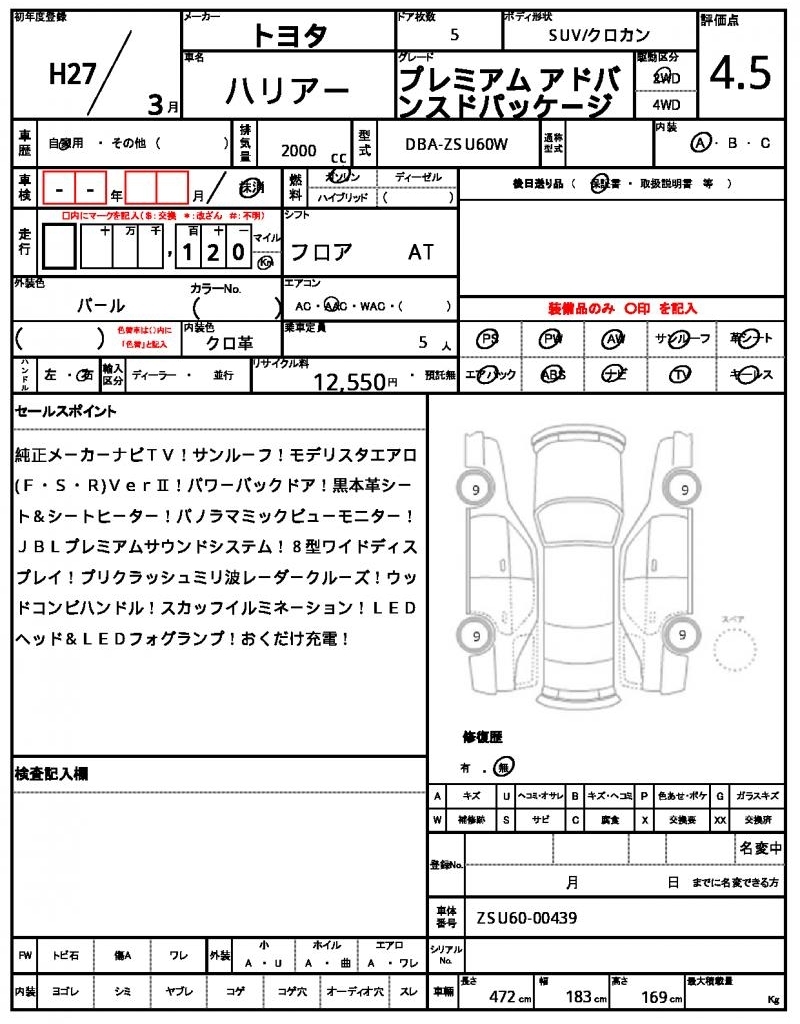 TOYOTA HARRIER - лот 43440