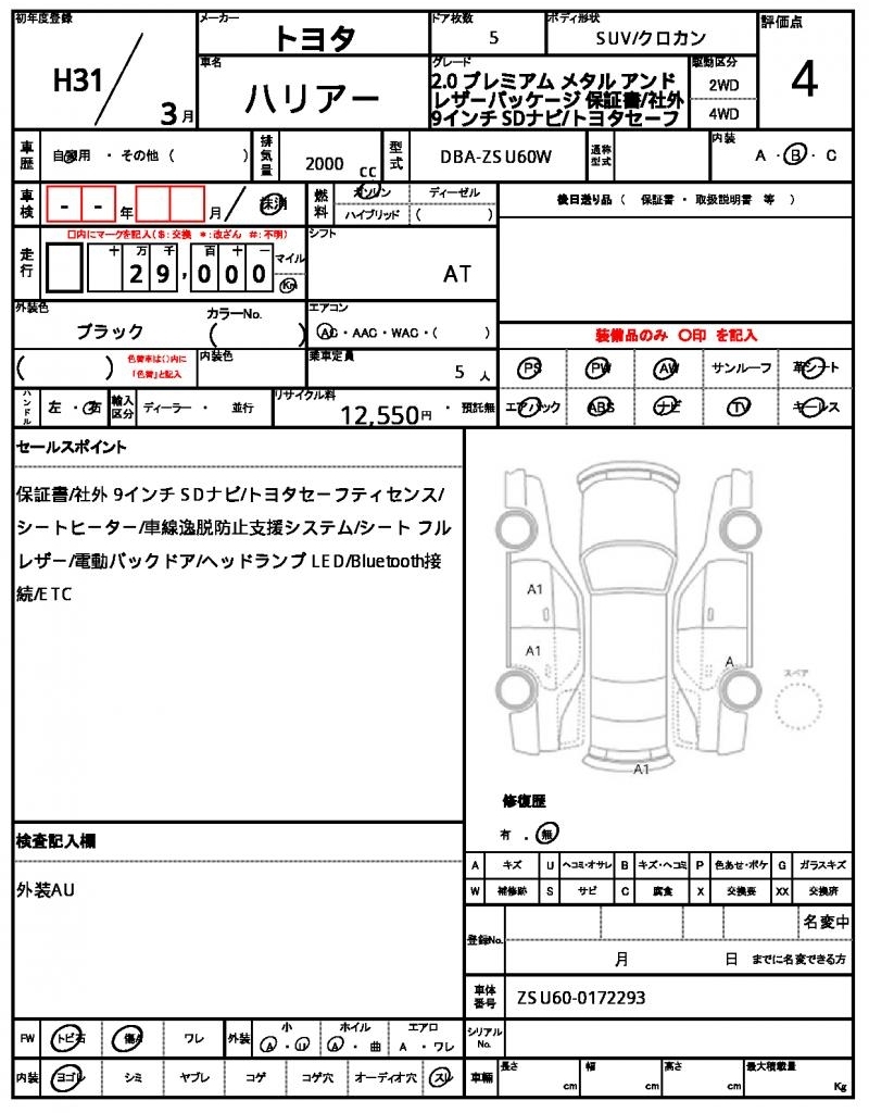 TOYOTA HARRIER - лот 41772