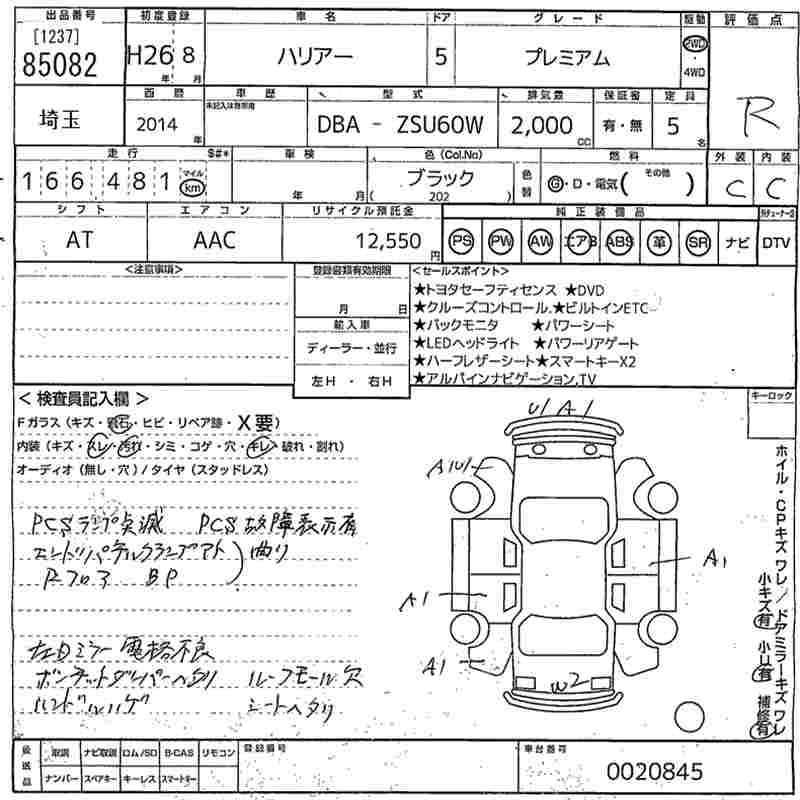 TOYOTA HARRIER - лот 85082