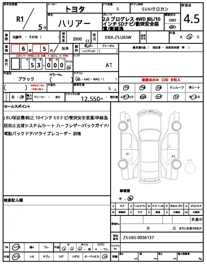 TOYOTA HARRIER - лот 5489