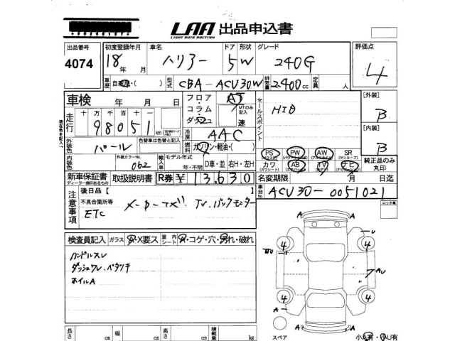 TOYOTA HARRIER - лот 4074