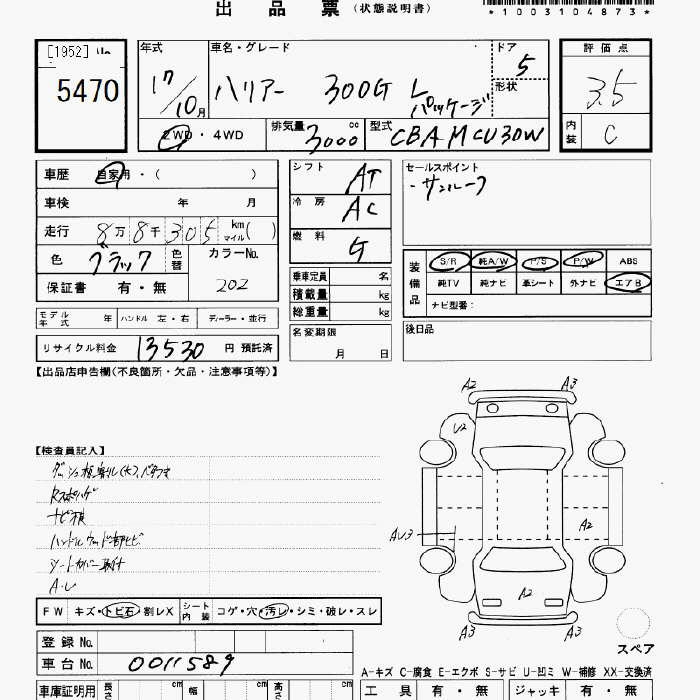 TOYOTA HARRIER - лот 5470