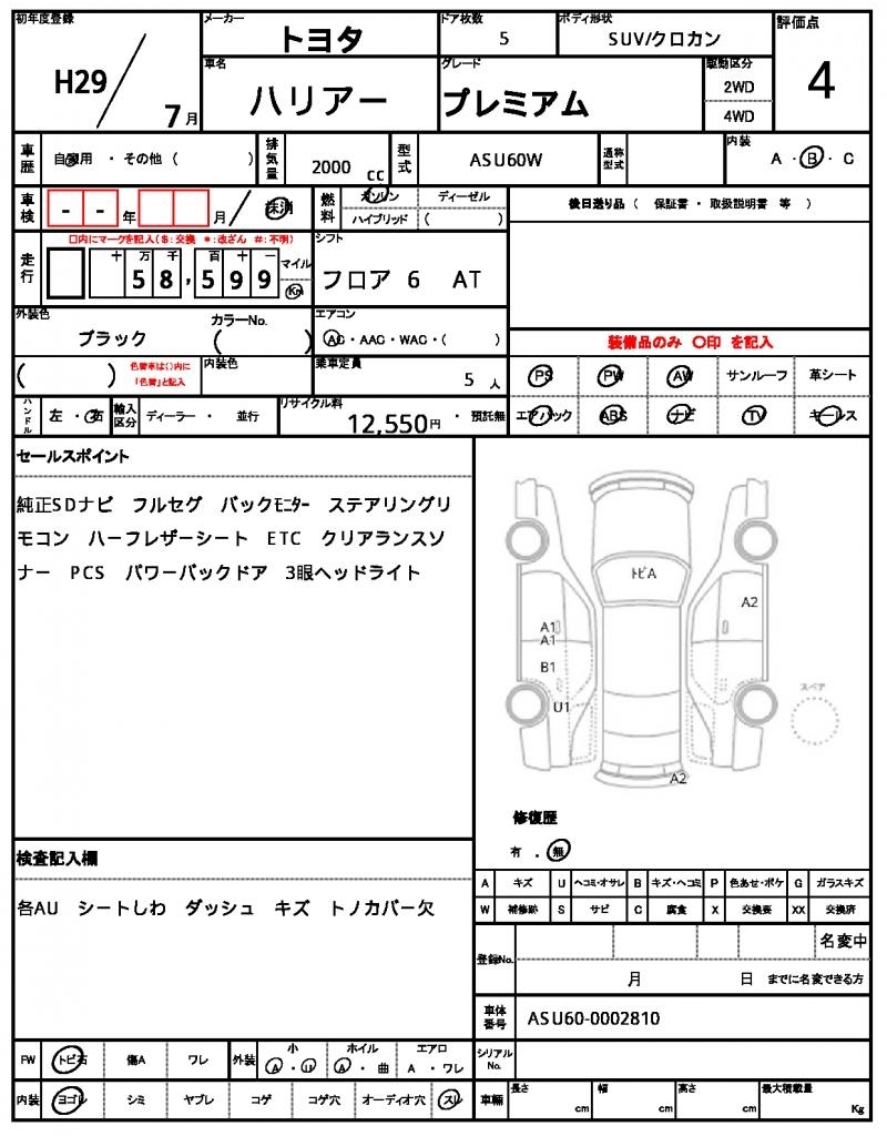 TOYOTA HARRIER - лот 7220