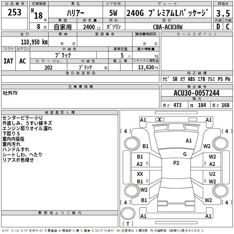 TOYOTA HARRIER 240G PREMIUM L PACKAGE - лот 253