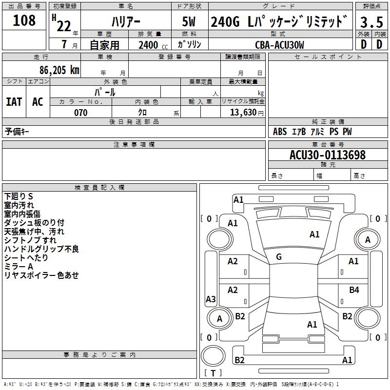TOYOTA HARRIER 240G L PACKAGE LIMITED - лот 108