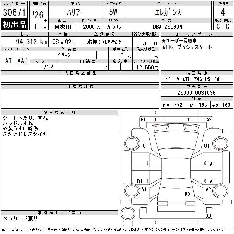 TOYOTA HARRIER ELEGANCE - лот 30671