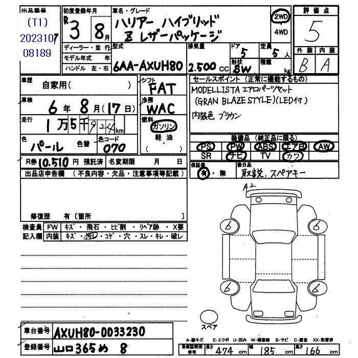 TOYOTA HARRIER - лот 2887