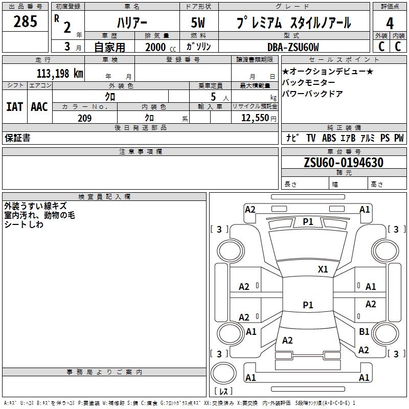 TOYOTA HARRIER PREMIUM STYLE NOIRE - лот 285