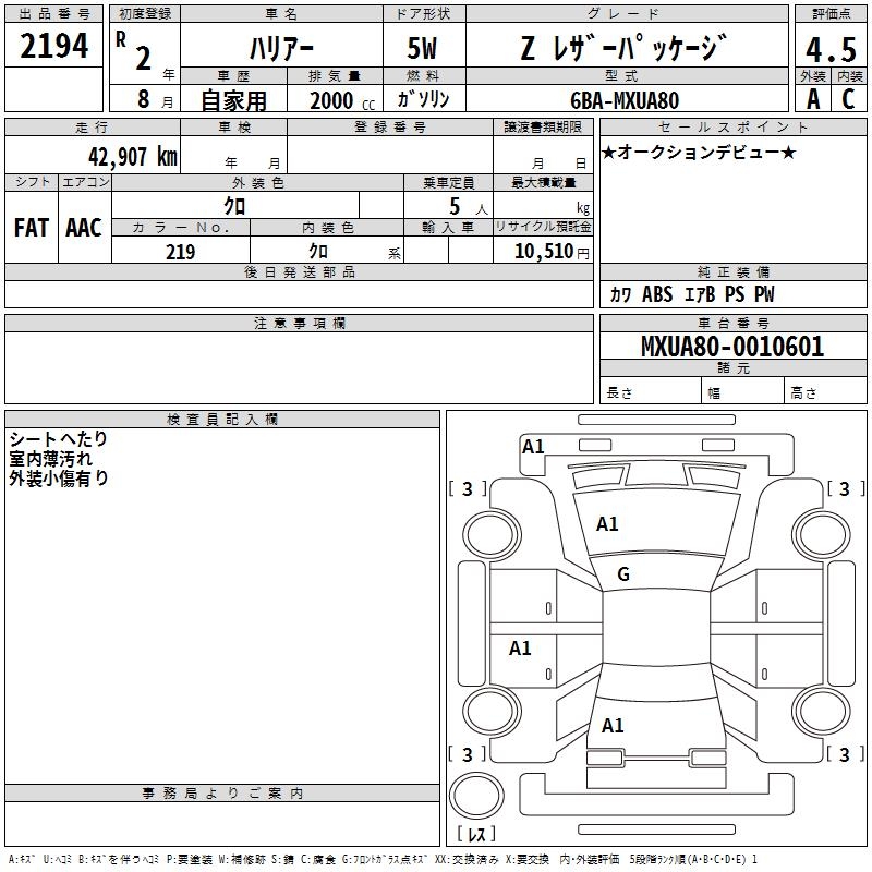 TOYOTA HARRIER Z LEATHER PACKAGE - лот 2194