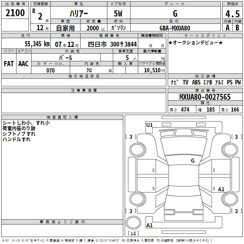 TOYOTA HARRIER G - лот 2100