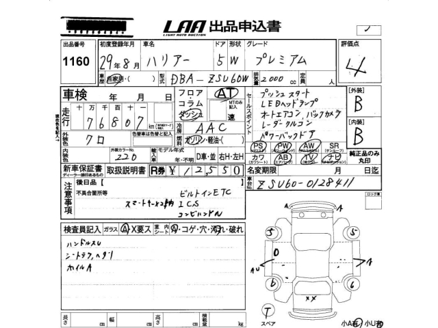 TOYOTA HARRIER - лот 1160