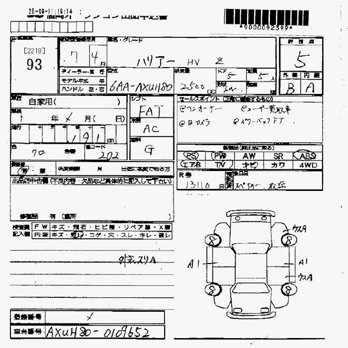 TOYOTA HARRIER HYBRID Z - лот 93