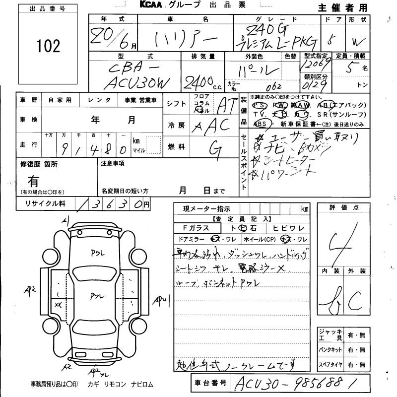 TOYOTA HARRIER 240G PREMIUM L PACKAGE - лот 102