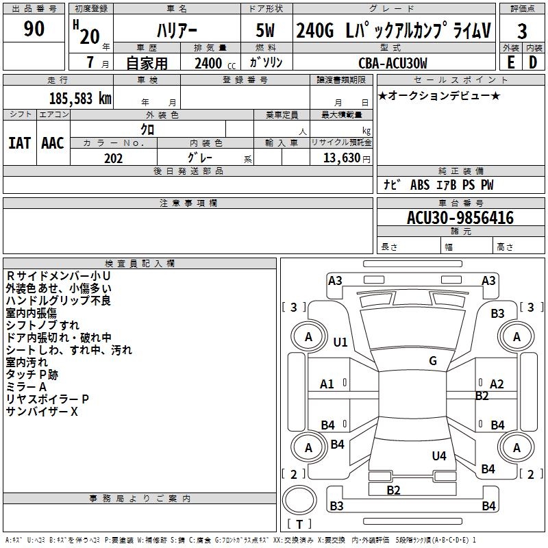TOYOTA HARRIER 240G L PACK ARUKAN PRIME V - лот 90