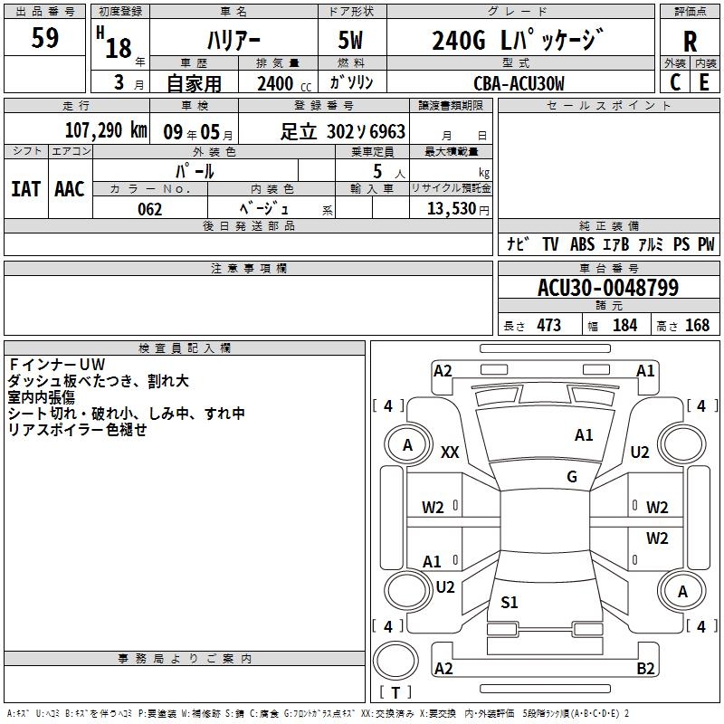 TOYOTA HARRIER 240G L PACKAGE - лот 59