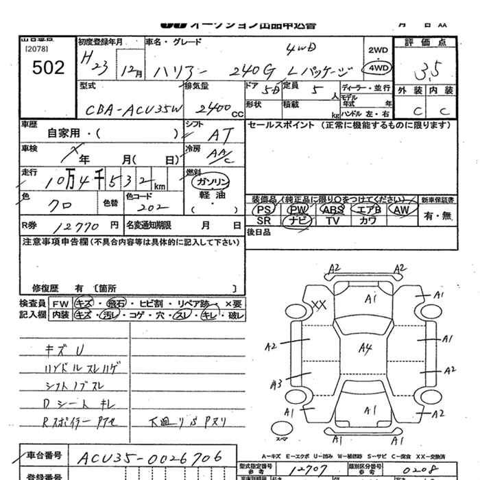 TOYOTA HARRIER 4WD 240G L PACKAGE - лот 502