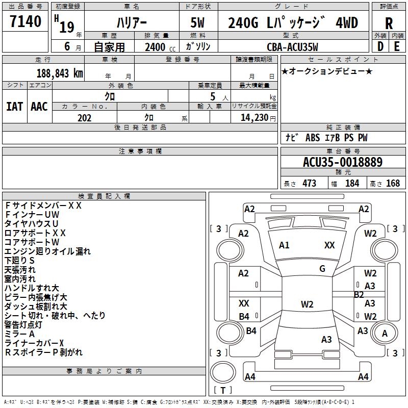 TOYOTA HARRIER 240G L PACKAGE 4WD - лот 7140