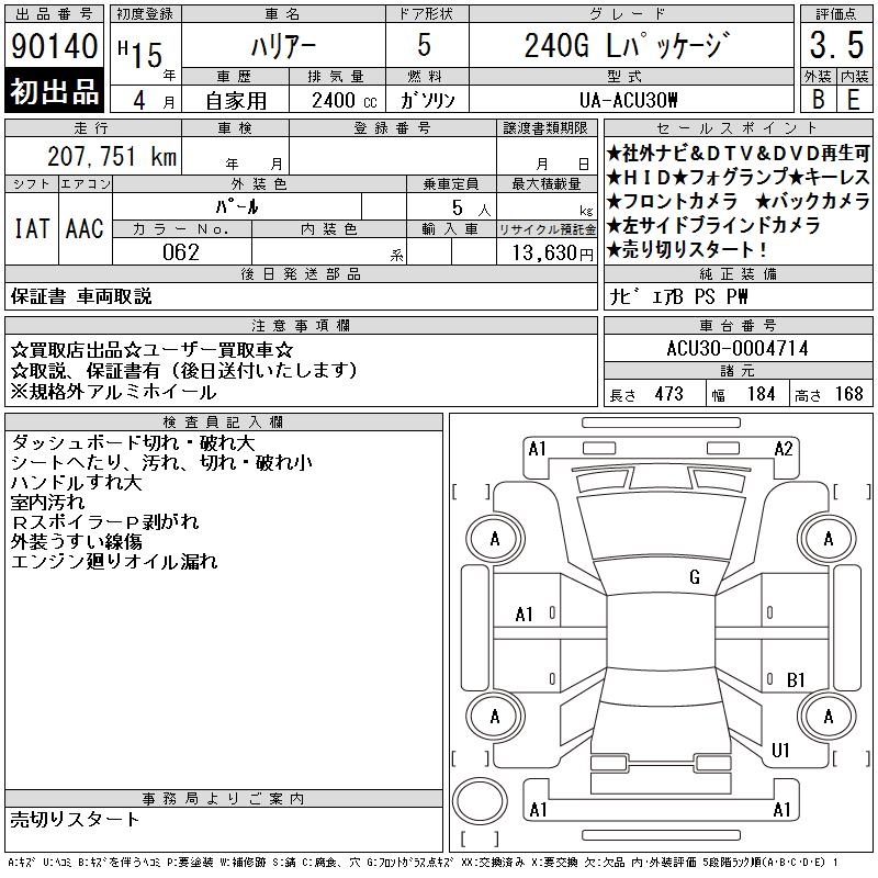 TOYOTA HARRIER 240G L PACKAGE - лот 90140