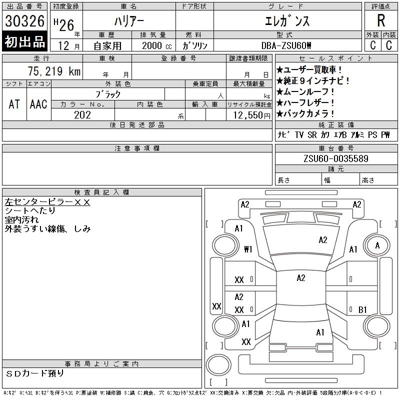 TOYOTA HARRIER ELEGANCE - лот 30326