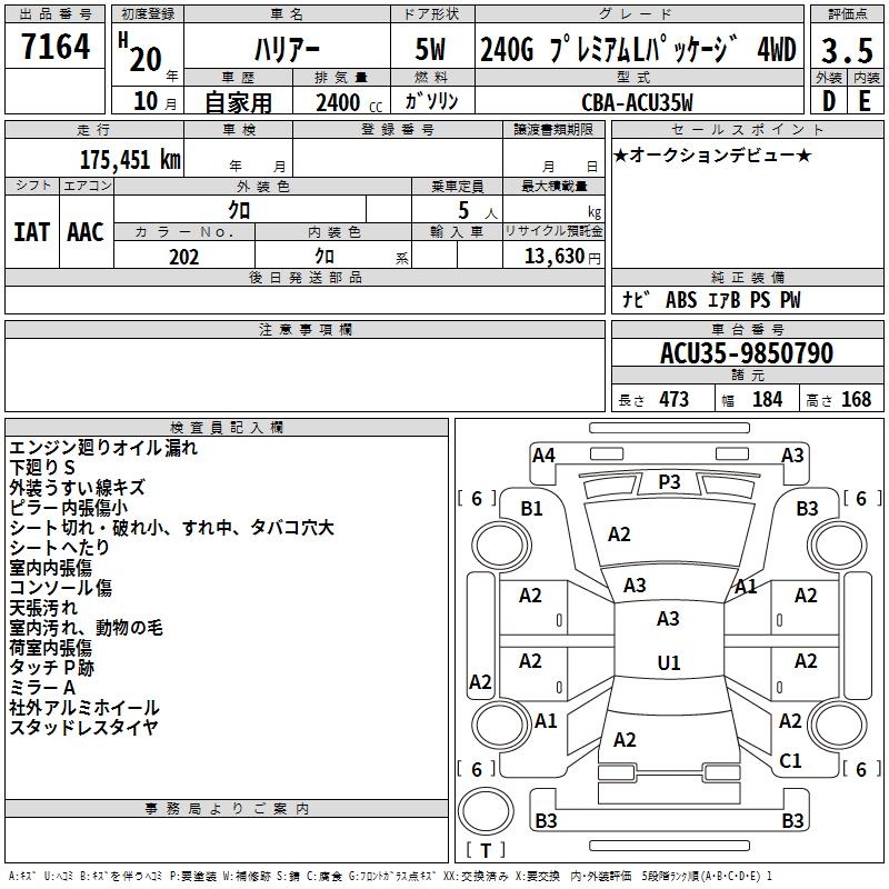 TOYOTA HARRIER 240G PREMIUM L PACK 4WD - лот 7164