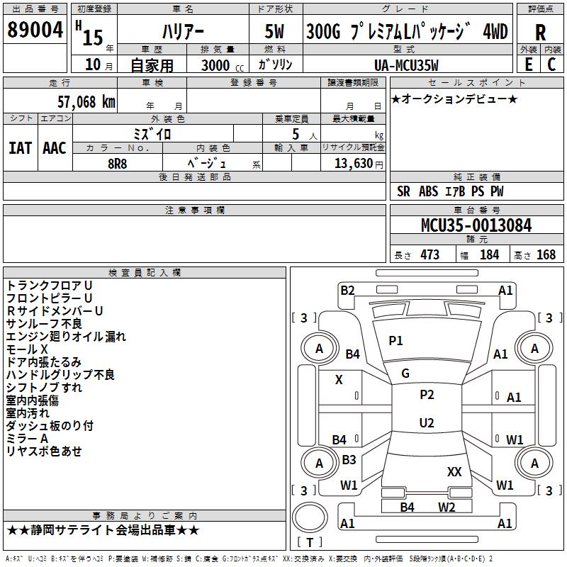 TOYOTA HARRIER 300G PREMIUM L PACK 4WD - лот 89004