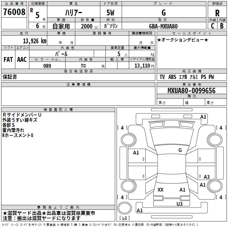 TOYOTA HARRIER G - лот 76008