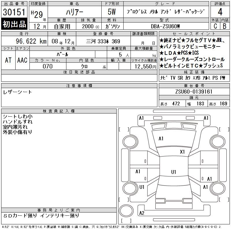 TOYOTA HARRIER PROGRES S METAL ANDO LEATHER P - лот 30151