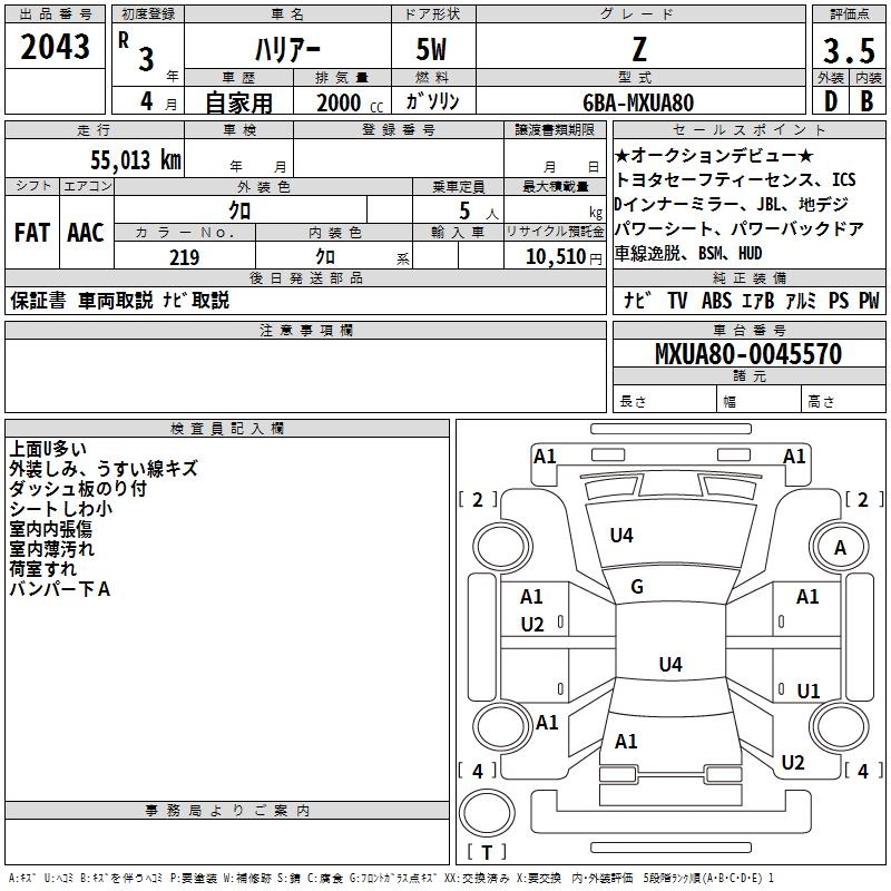 TOYOTA HARRIER Z - лот 2043