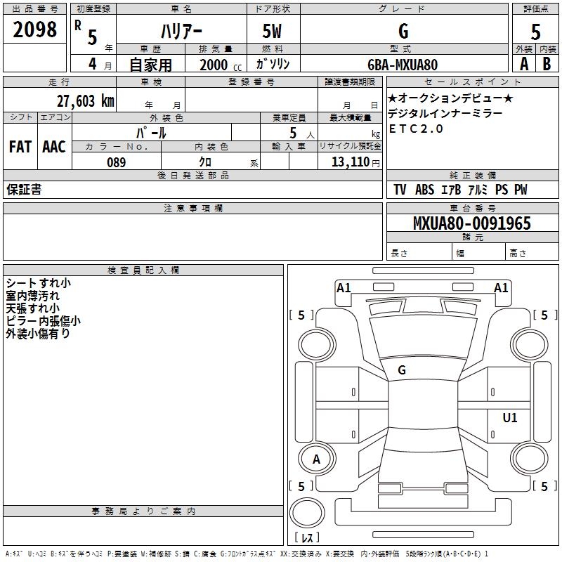 TOYOTA HARRIER G - лот 2098