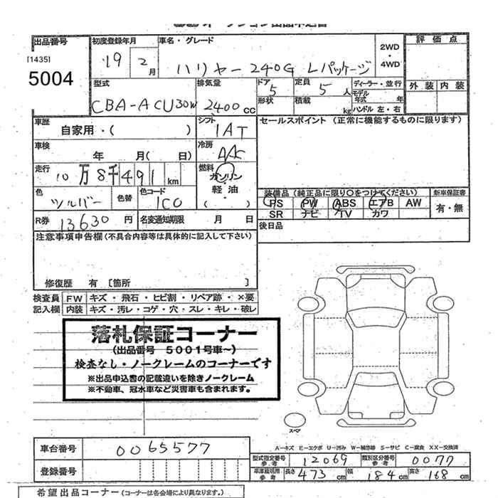 TOYOTA HARRIER 240G L PACKAGE - лот 5004