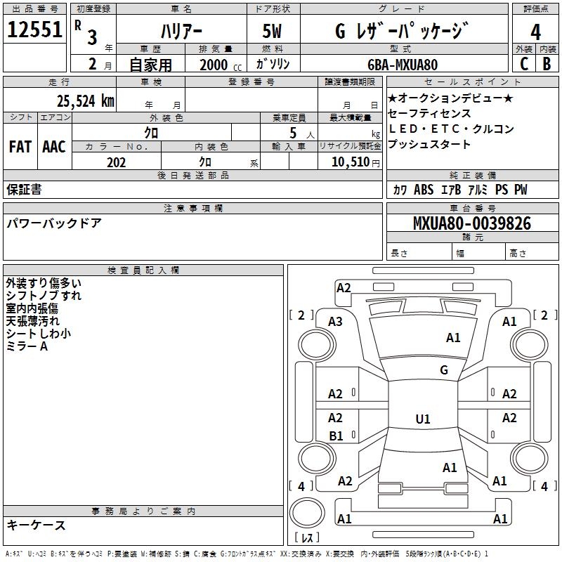 TOYOTA HARRIER G LEATHER PACKAGE - лот 12551