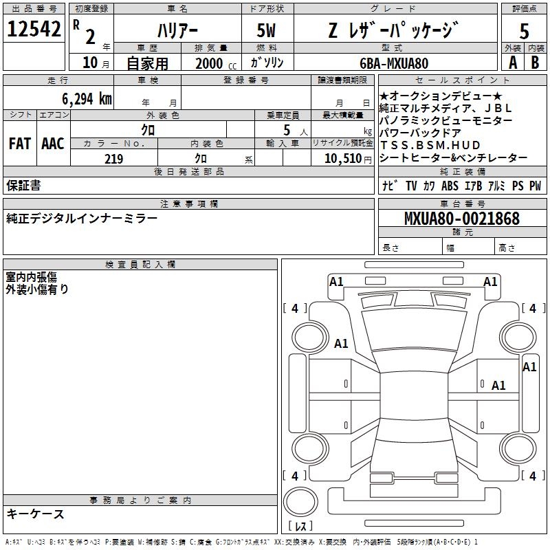 TOYOTA HARRIER Z LEATHER PACKAGE - лот 12542