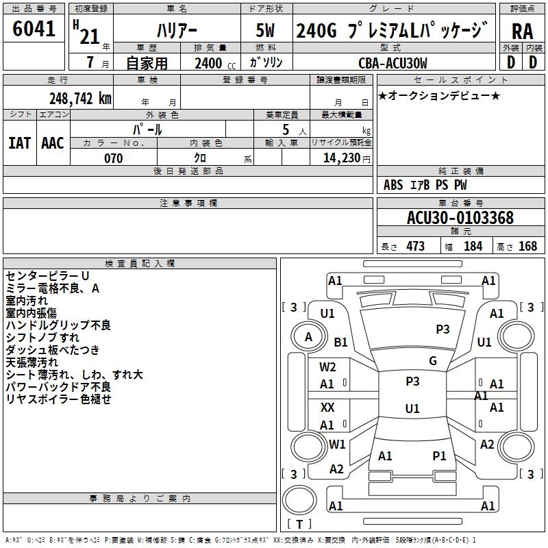 TOYOTA HARRIER 240G PREMIUM L PACKAGE - лот 6041