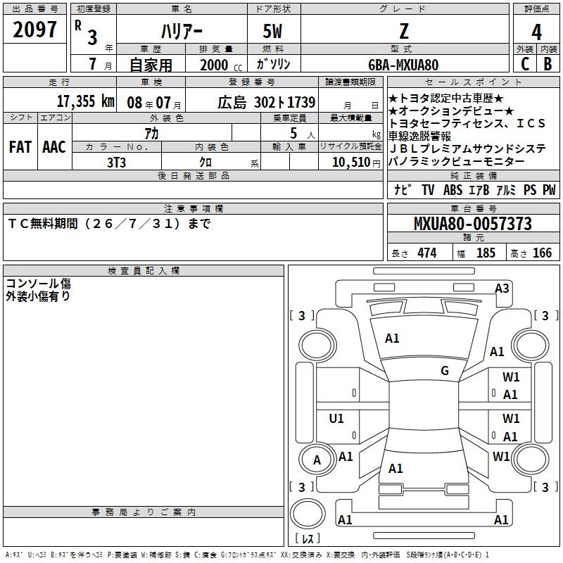 TOYOTA HARRIER Z - лот 2097