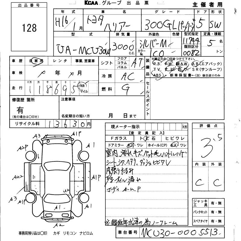 TOYOTA HARRIER 300G L PACKAGE - лот 128